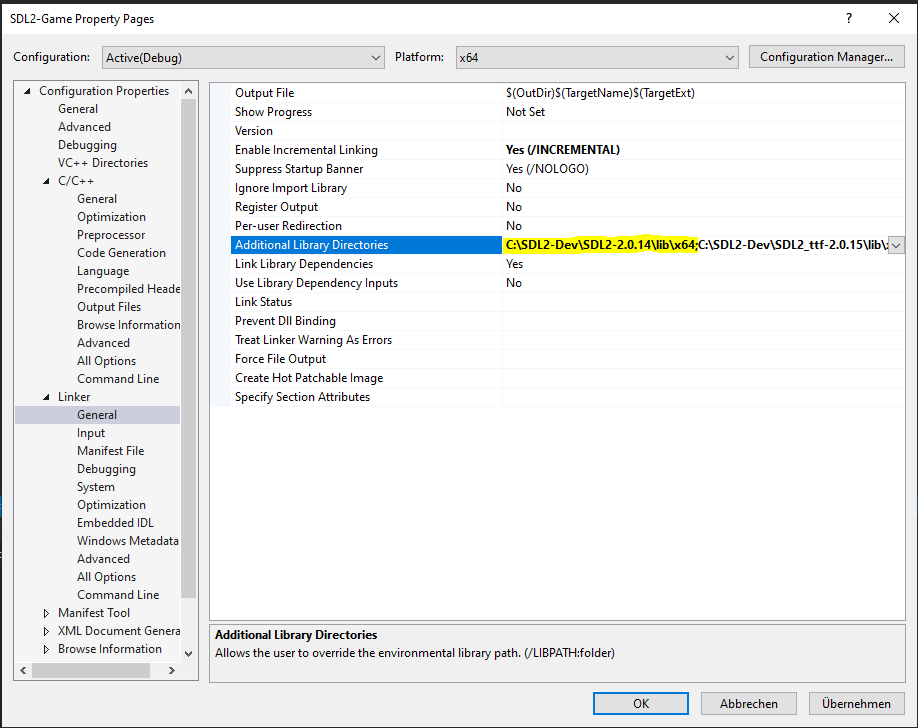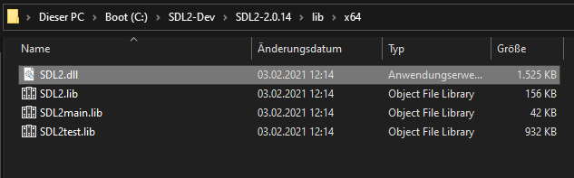DLL Dateien aus dem SDL2 Ordner in das Projektverzeichnis kopieren.